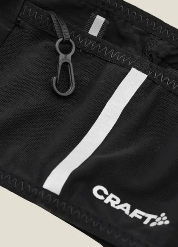 Das Trail Band ist ein kompakter und leichter Laufgürtel für wichtige Utensilien während intensiver Trailrunning-Einheiten. Er besteht aus elastischem Material und schmiegt sich für einen bequemen Sitz eng an die Taille an. Der Gürtel verfügt über mehrere Taschen in verschiedenen Größen, darunter eine geräumige Reißverschlusstasche, sowie elastische Bänder auf der Rückseite, um zusätzliche Kleidung zu transportieren.