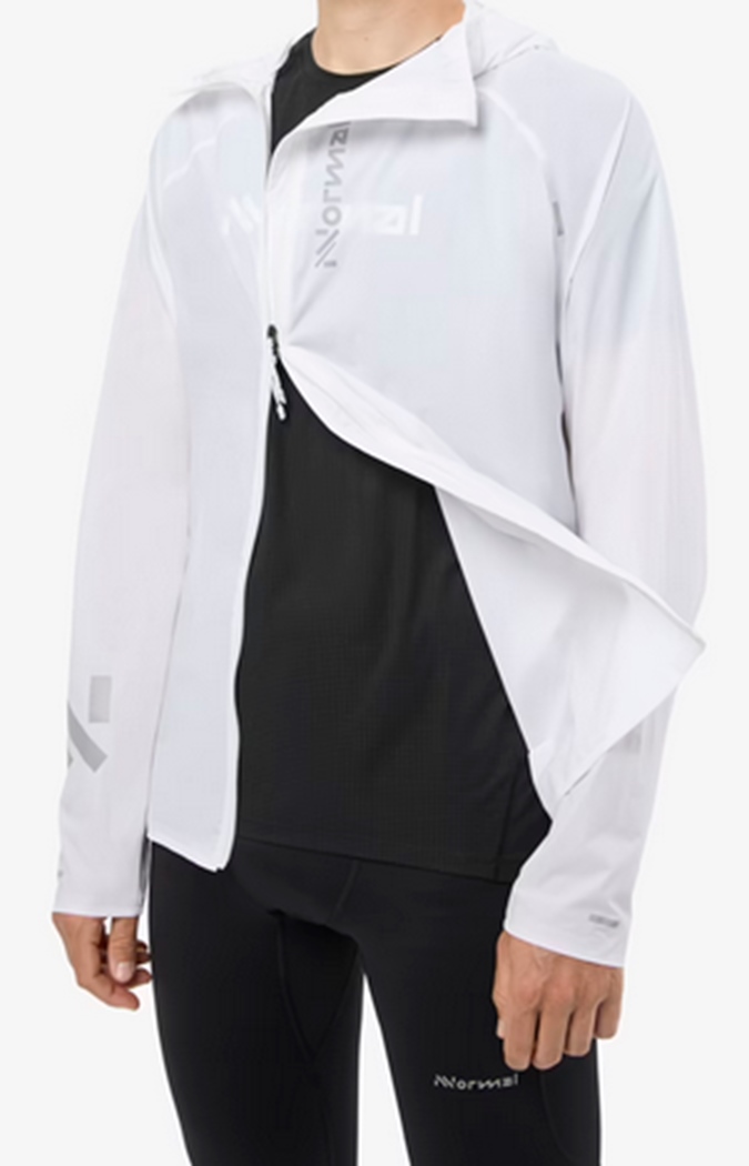 Hier bringt Nnormal eine leichte Windjacke in klarem Weiss. Volle Bewegungsfreiheit, damit Du auf jedem Trail Windböen trotzen kannst. Dazu reflektierende Applikationen für bessere Sichtbarkeit und ein Zweiwegereissverschluss. Und das mit nur 123g!