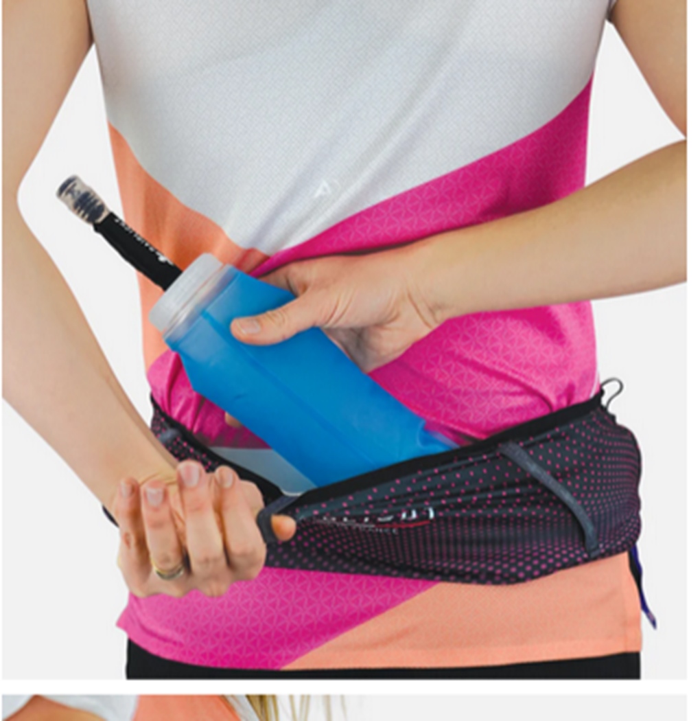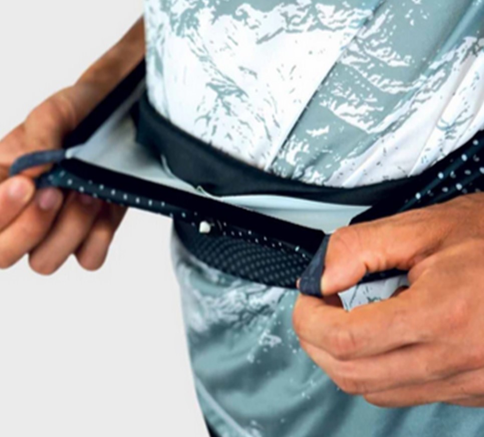Freie Bewegung mit dem ultraleichten und bequemen Gürtel. Er bietet Platz für eine Trinkflasche (bis 600ml), für Verpflegung und sogar Trail-Stöcke. Und die Startnummer lässt sich auch befestigen!